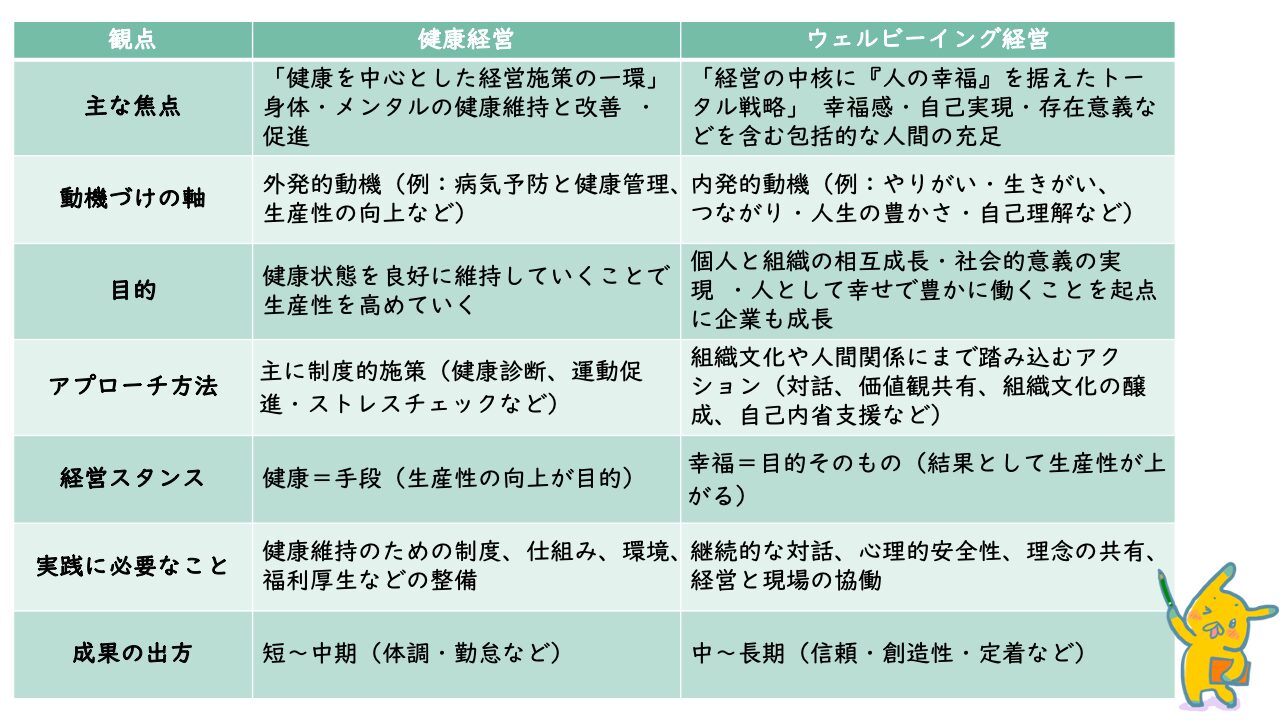 そして、健康経営とウェルビーイング経営どちらか、ではなく、どちらも多様な時代に求められる新しい経営視点なのは言うまでもありません。