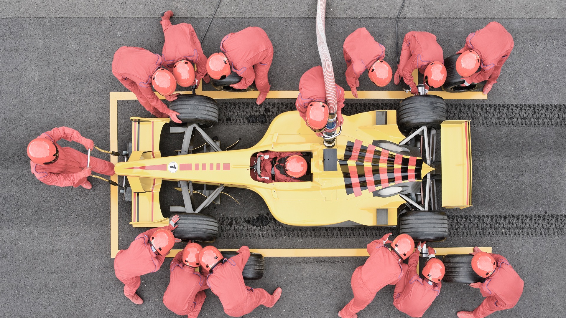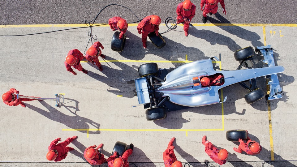 必要なときに立ち止まり、ドライバーが最高のパフォーマンスを発揮できるよう、ほんの数秒の間に、タイヤを交換し、燃料を補給し、微細な調整を加える。