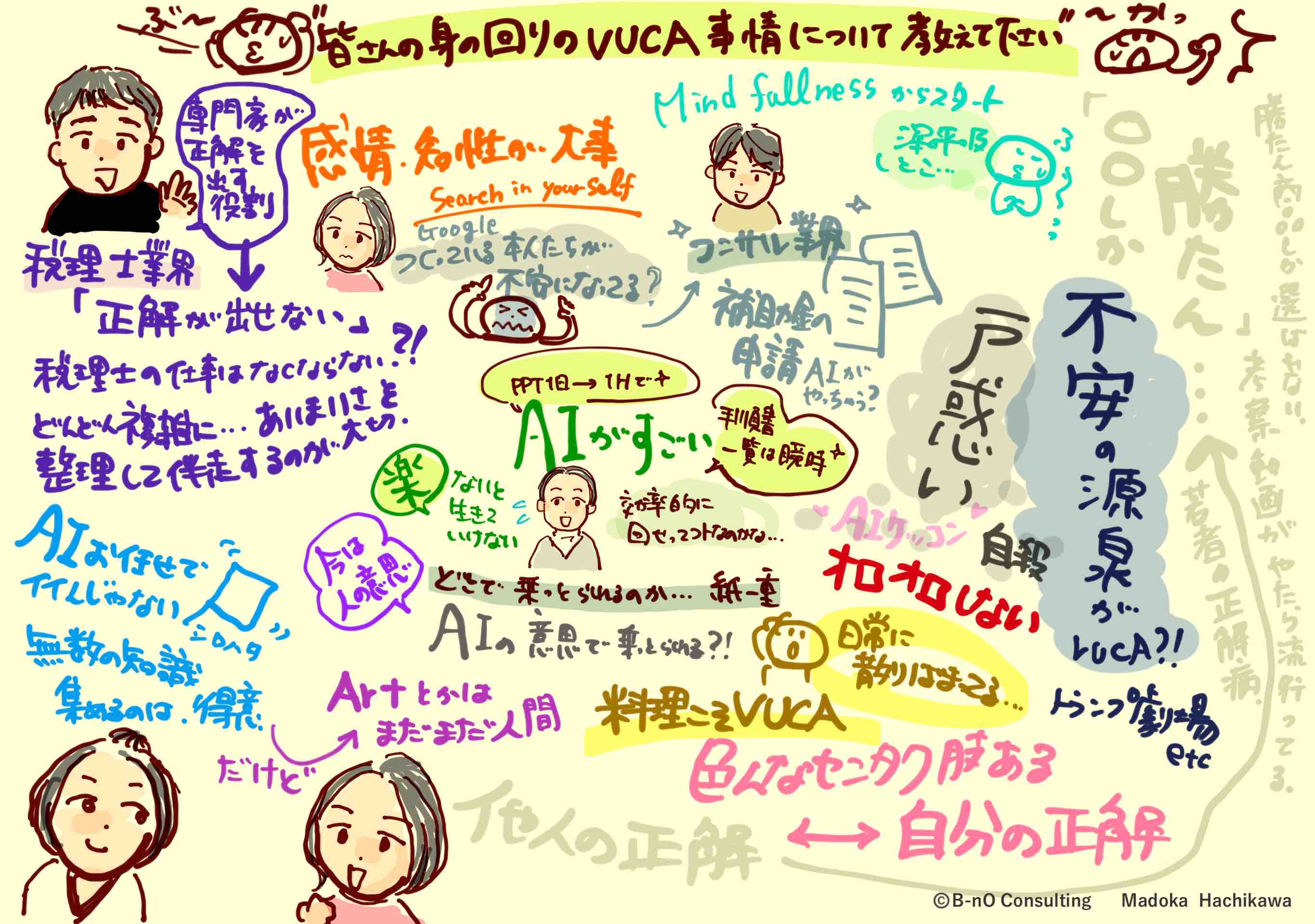 VUCAを日常にある身近なものへと落とし込んだことで生まれた、軽やかな空気は、ちょっとだけ重くなっていた対話の場を、フワッと優しく包み込んでくれるようでした。