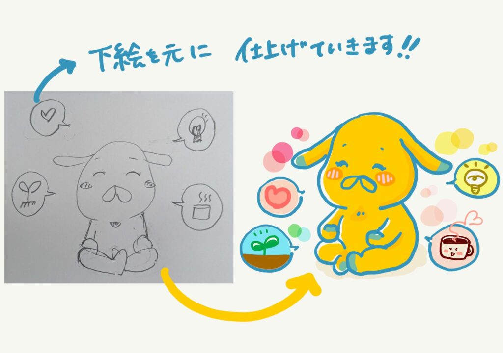 あそび心で、「この下絵を元に、AIに描かせたらどうなるか?!」実験してみました。